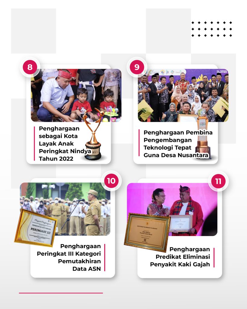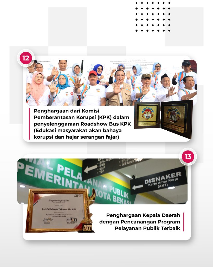 Berikut adalah Sebagian Prestasi yang diraih Tri Adhianto Selama Menjabat Sebagai Walikota BekasiPrestasi Tri Adhianto Walikota Bekasi
